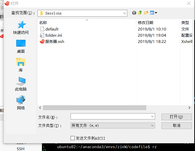 从Windows上传文件,上传命令为rz;输入命令后会弹出选择要上传的本地文件的窗口。