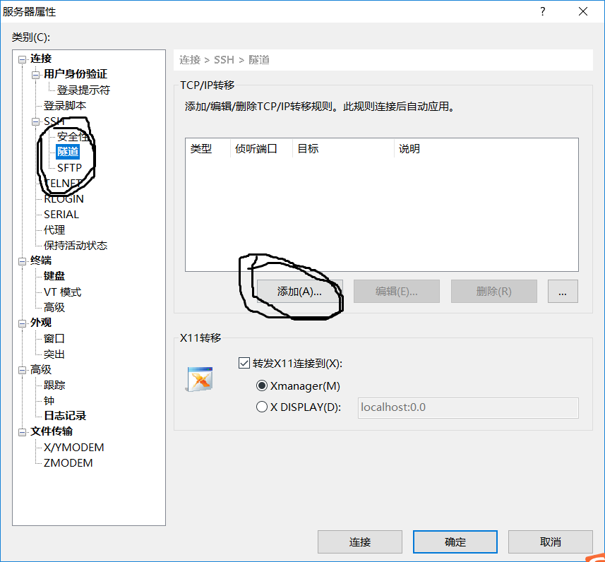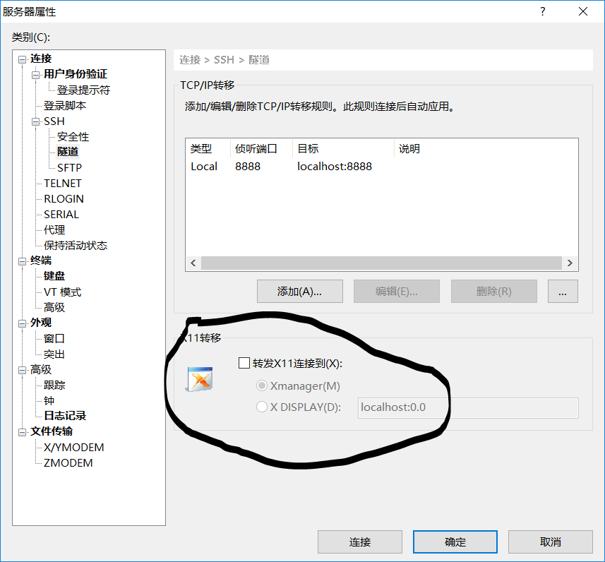 - 然后再取消右下方转发X11连接到的选项,然后点确定。